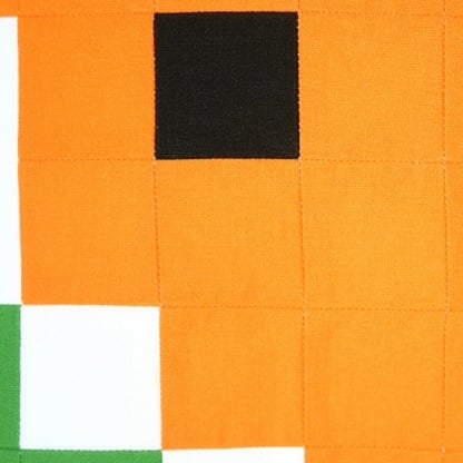 Pixelated cushion using bold coloured and white Kona cotton squares to create a foxes face. This on trend cushion will brighten up your bed, sofa or chair.
