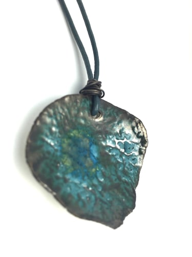 A fabulous textural ceramic necklace with a sea blue green glaze.