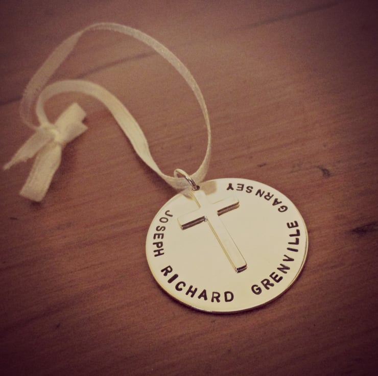 A beautiful reminder of your child's Christening or Baptism day, this Sterling Silver decoration can be stamped with your chosen words, name or date. Or a mixture of all, as I can play around with the layout! There's also the option to stamp the back too, if required.