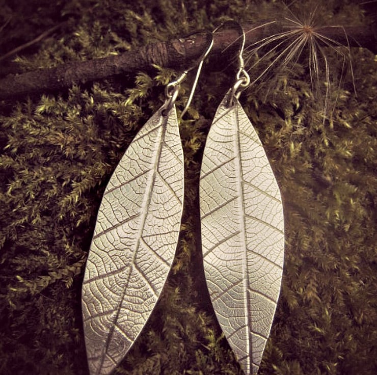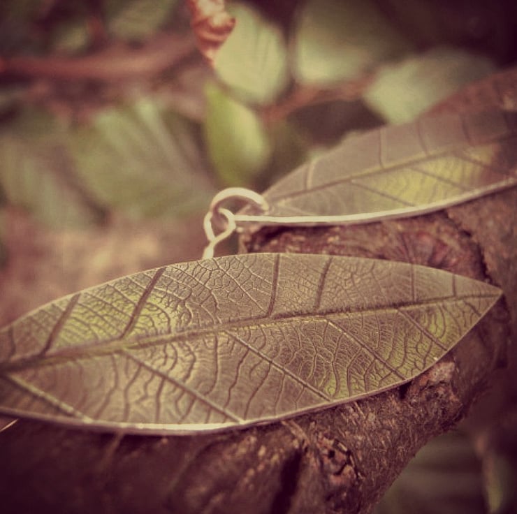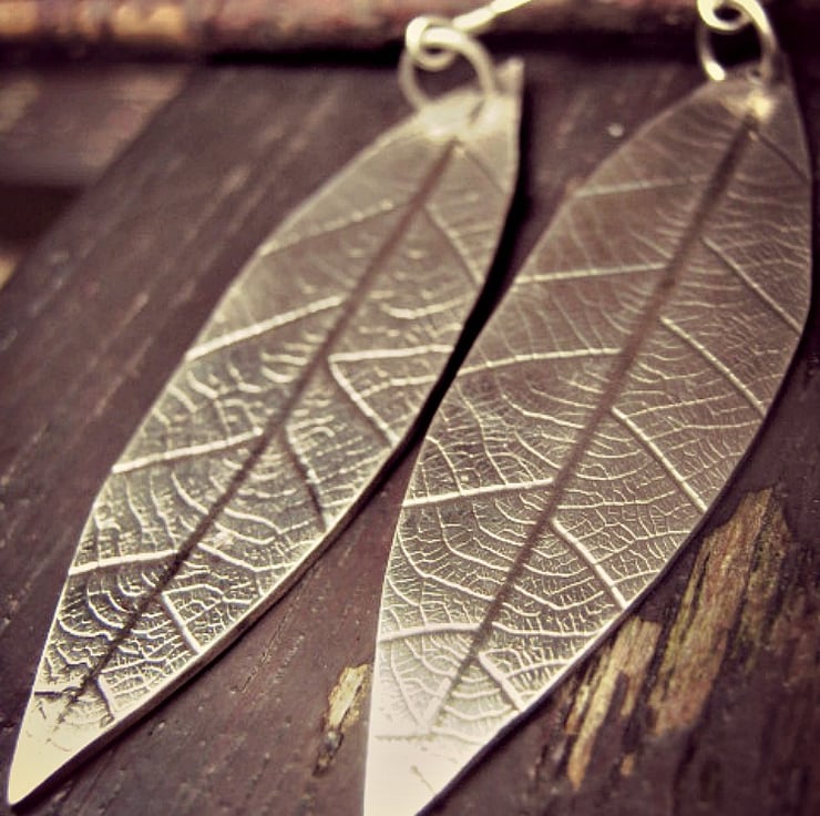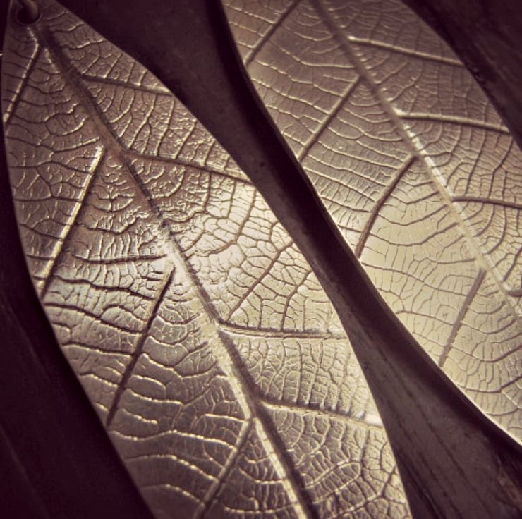 I heat the Silver up until it's pliable. I roll it through my trusty mill with a real leaf skeleton and the perfect pattern (made by Mother Nature) is left in the Silver forever. I complete the process by oxidizing the leaves to really bring out the intricate detail.