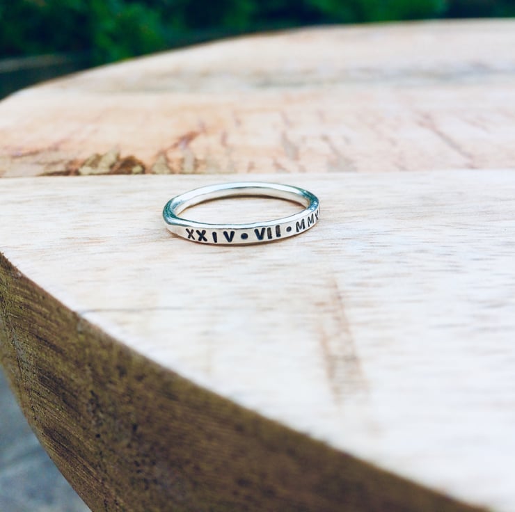 Please remember to leave me details of your required ring size and the word/date you'd like it to be stamped with...and if you're providing the date in standard format but would like me to convert to Roman numerals just let me know xx