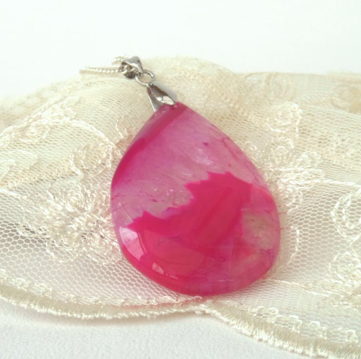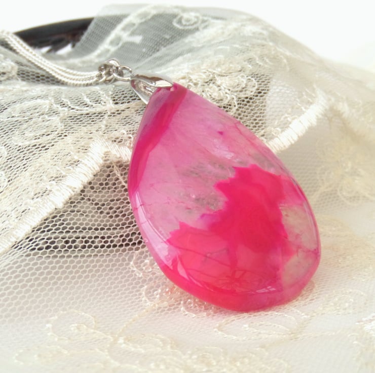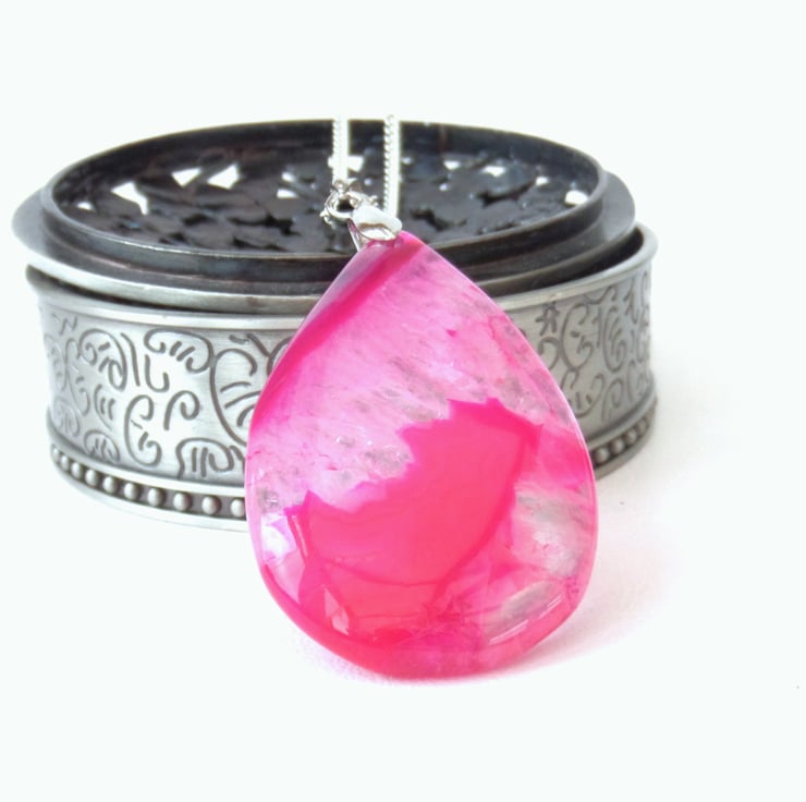 This dyed agate is quite stunning, with different depths of pink revealed within it.