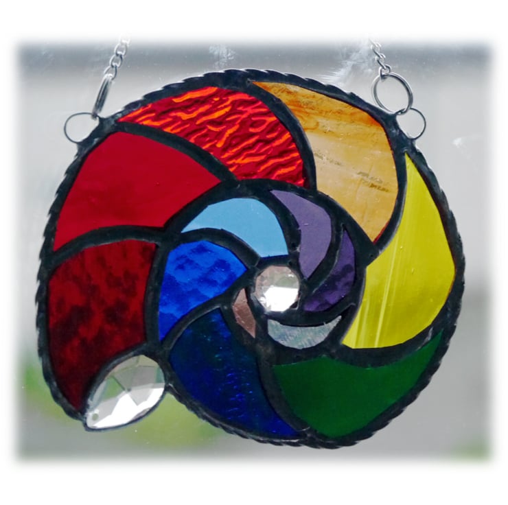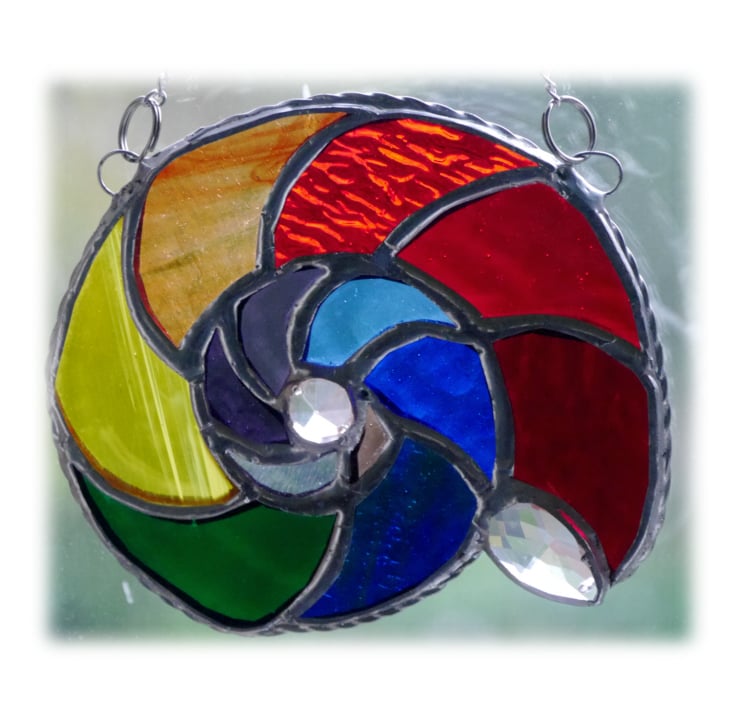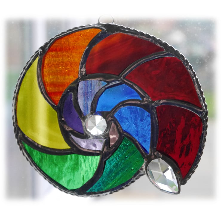 We were planning a visit to the Jurassic Coast near Lyme Regis. I came across some fossil and ammonite references while I was googling the area and was inspired to make one. Rainbow coloured - just because I love stained glass in vibrant colours.