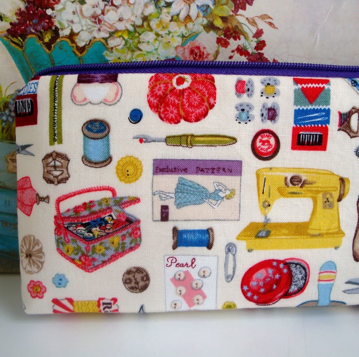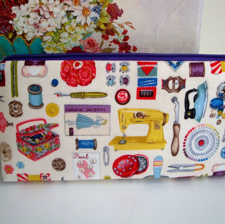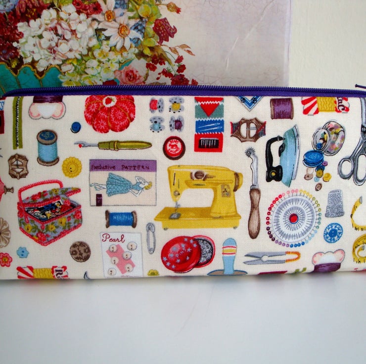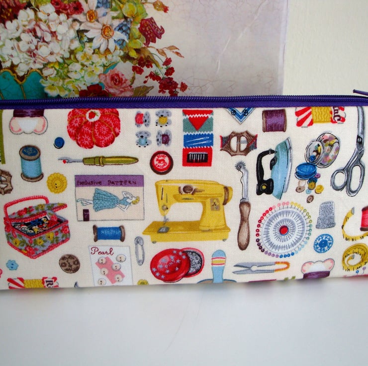A lovely handmade zipper case/ storage , ideal for storing a selection of your sewing notions , DP knitting needles .