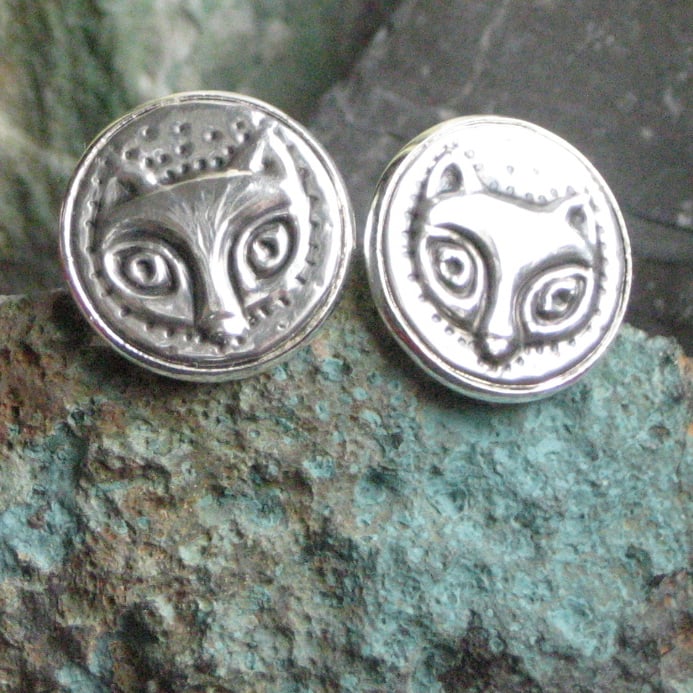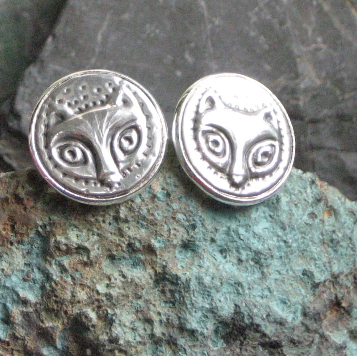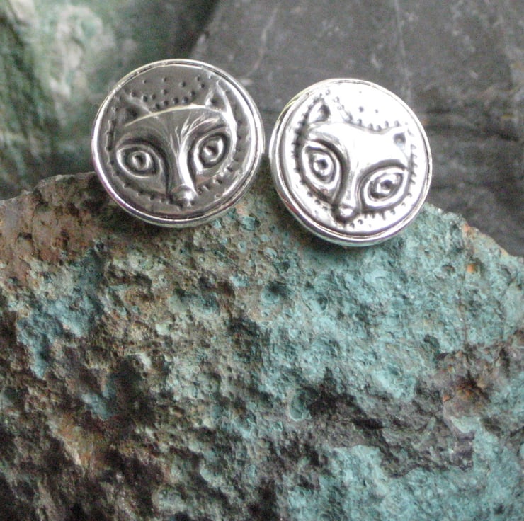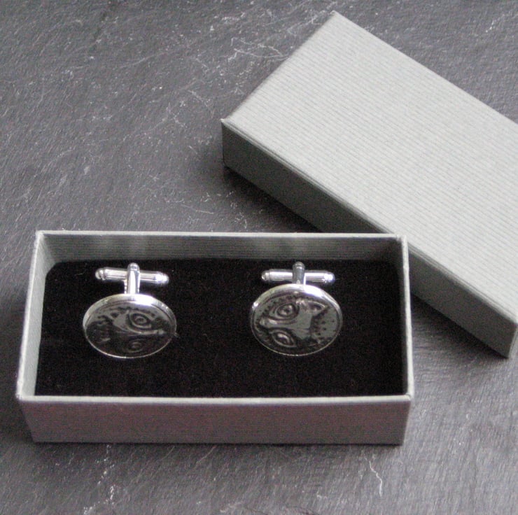 Handmade silver pewter cufflinks with a fox design. These cufflinks are full of character and have been individually handmade (not cast) in shiny sheet pewter. Because of the method of making, the faces differ slightly but this adds to their charm! Measuring 21mm across, they will be sent to you in a smart grey box ready to give as a gift to a friend, brother, father, boyfriend or husband. A unique Christmas present to treasure.