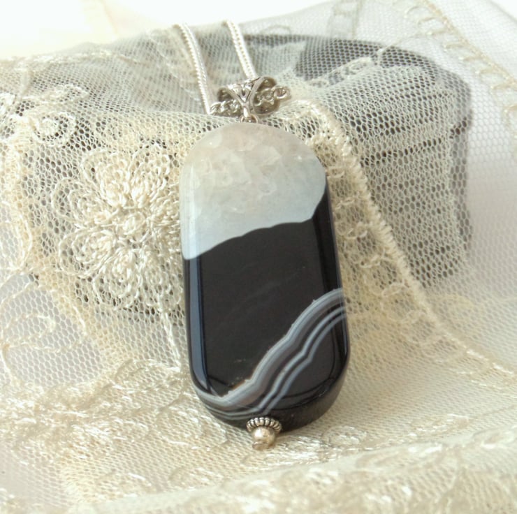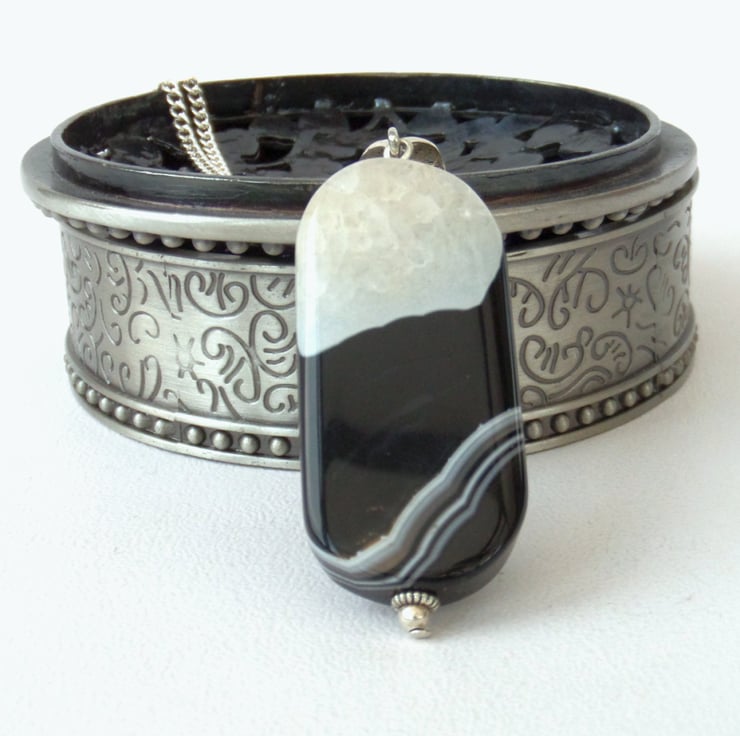 The agate is quite stunning - unusual markings in black, brown & white against a cream background.