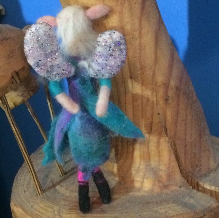 Her body and form had been made by needle felting.Made from Shetland & merino wool needle felted by hand, this takes hours and hours of stabbing the wool with a needle. I usually choose to use a single needle as I feel it gives me more control but means it can take longer than using a multi needle tool.