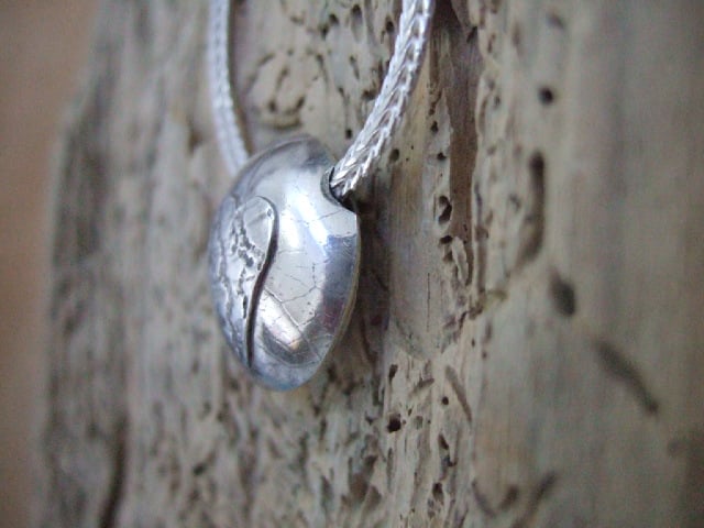 I then cut out the heart for ontop of the dome, rolling this with a piece of lace and giving it a more defined pattern. This is then soldered onto one of the circles which are then domed and soldered together...