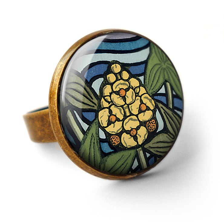 A gorgeous ring featuring an art nouveau illustration of a yellow arrowhead flower. This design is part of the 'Art Nouveau' range.