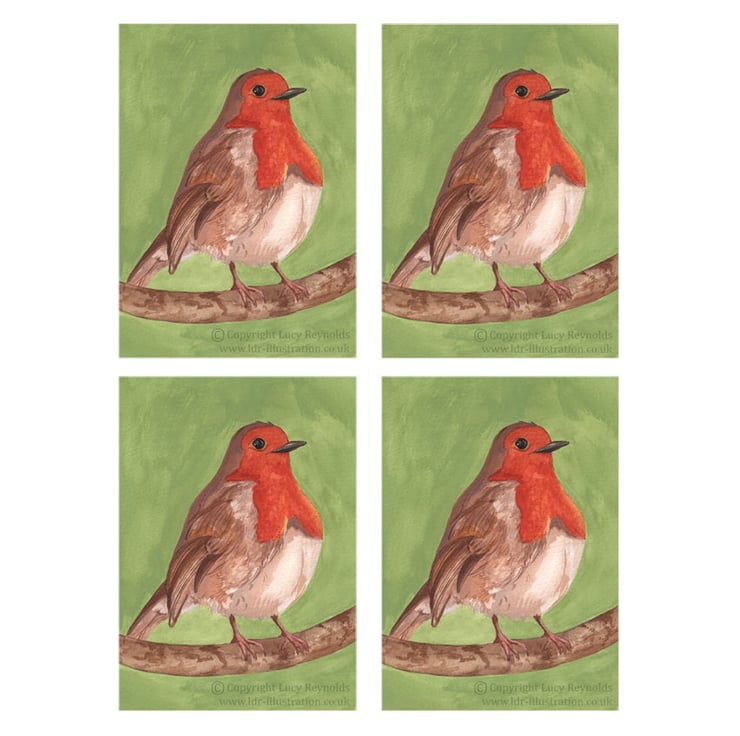 Pack of 4 greeting cards featuring my 'Robin' illustration. I painted the original image with watercolours.