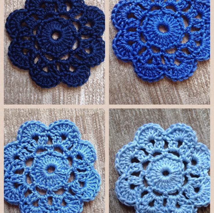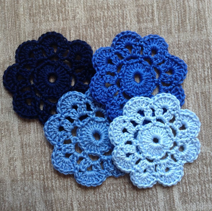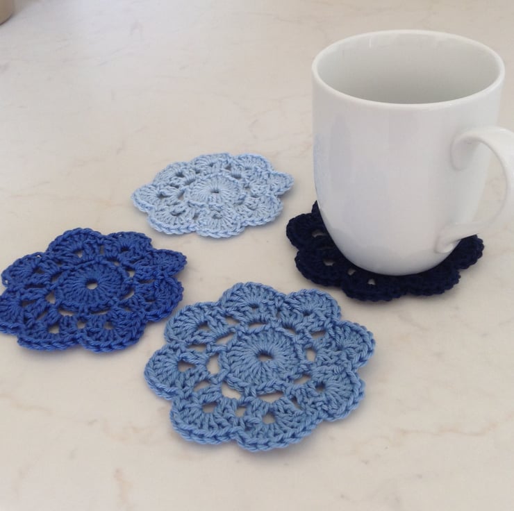 These flower coasters have been handmade using mercerised 100% cotton yarn.