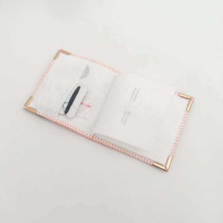 The needle case measures approximately 8cm x 8cm.