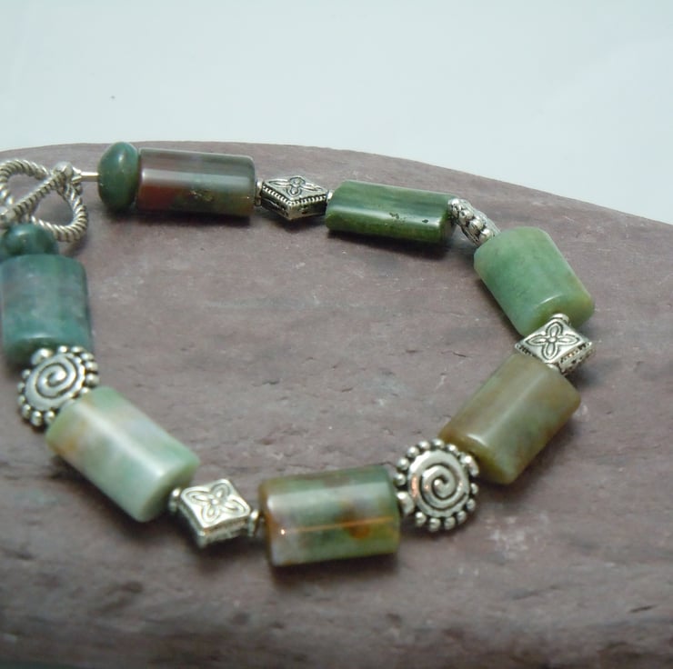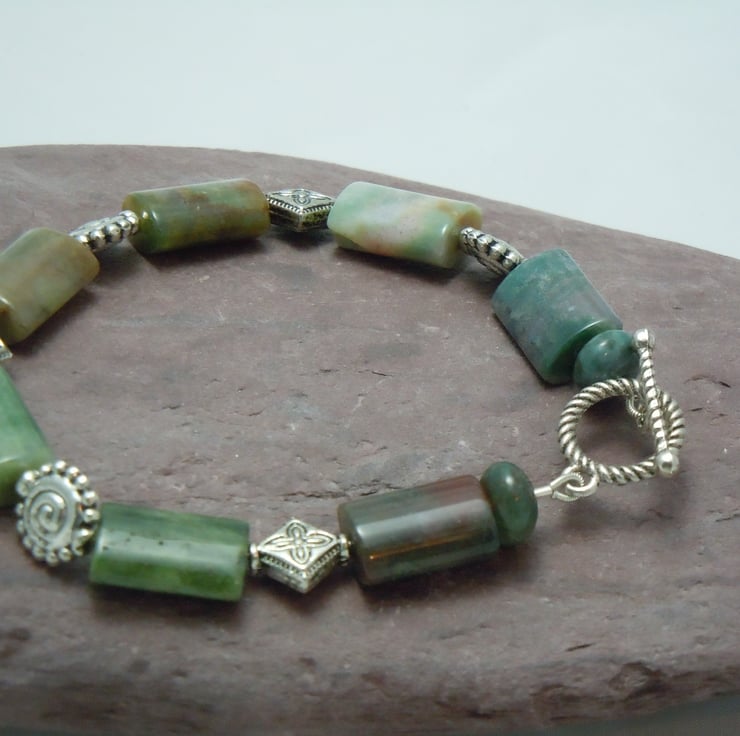 Lovely subtle forest colours, Indian Agate is known as the 'Stone of Eternity', brings comfort to the idea of growing old with ever growing inner beauty, wisdom, and gratitude for all that is and will be. It helps to release old emotions, and brings a positive outlook on life. It brings a calming, and tranquil vibration to the heart & is the birthstone of Gemini & Taurus.
