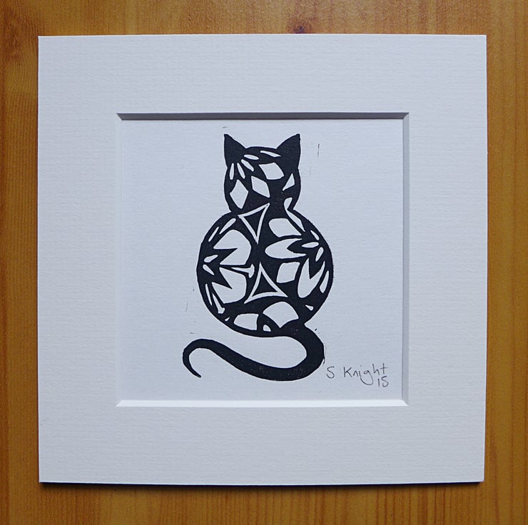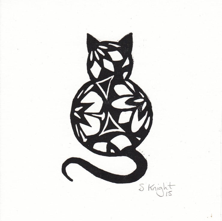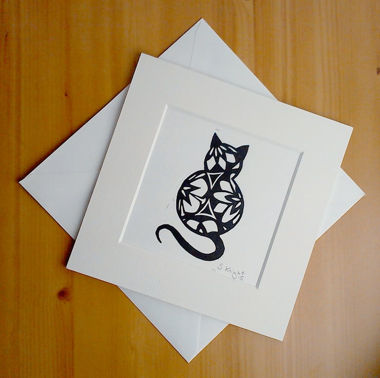 This greeting card with the design of a black cat on is an open edition signed print. Printed by hand on Japanese hosho paper.