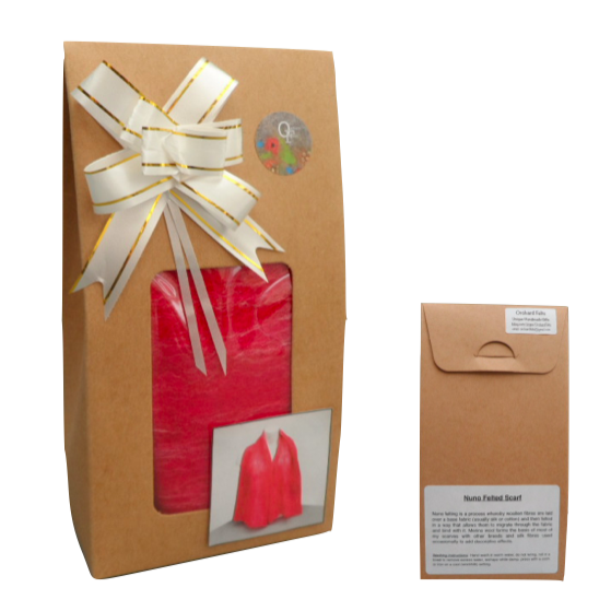 The result is a super soft, sheer and amazingly lightweight scarf which drapes beautifully. The nuno felting allows the wool layers to be very fine with the underlying silk providing the strength of the material.