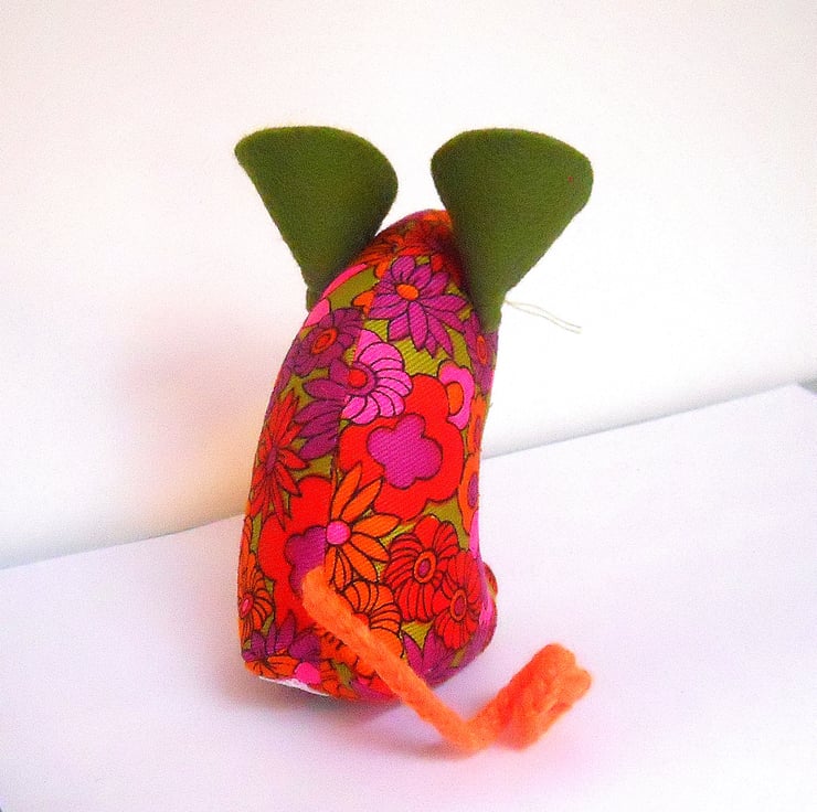 Mouse made of vibrant PINK Vintage Fabric from WittyDawn.