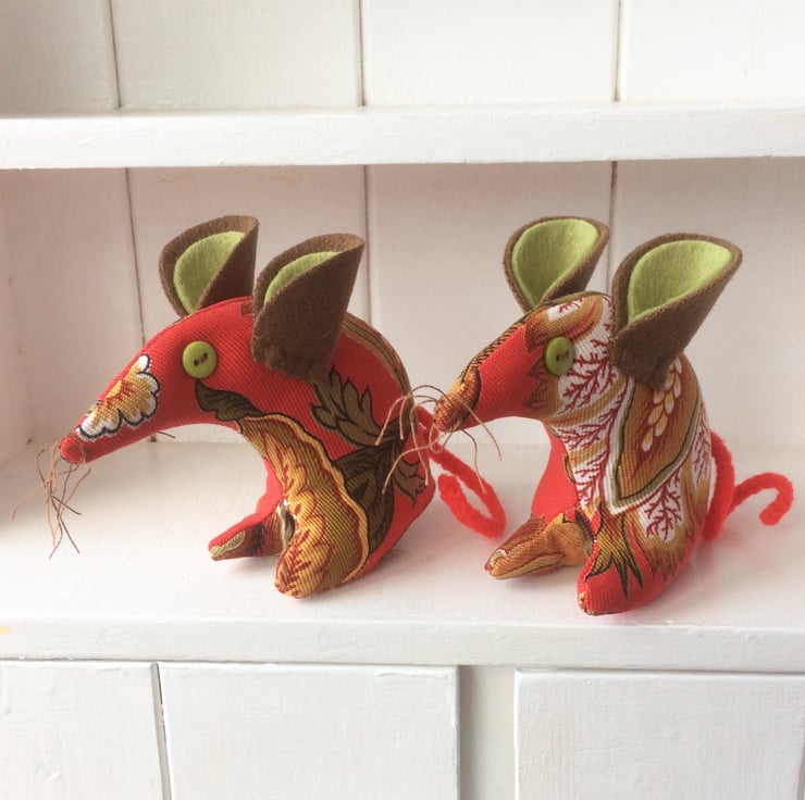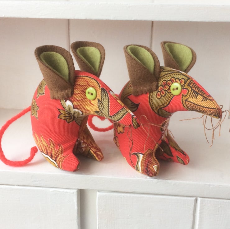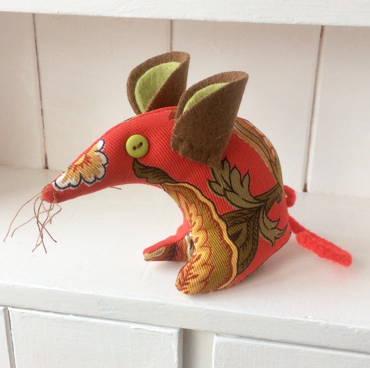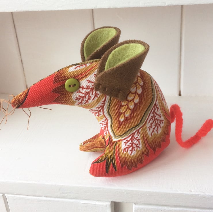 Mouse made in stunning red French anitique / vintage Fabric, from WittyDawn. One of my lovely antique market friends regularly goes France to source antique textiles and I bought this wonderful fabric from her.
