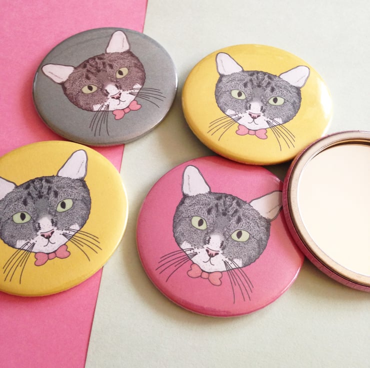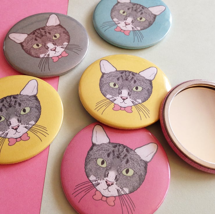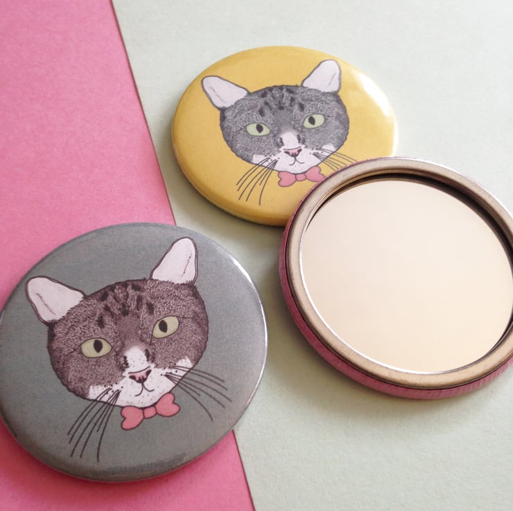 A mirror with a cute illustrated cat to carry around in your pocket, handbag or purse. A purrrfect gift from cat lovers!