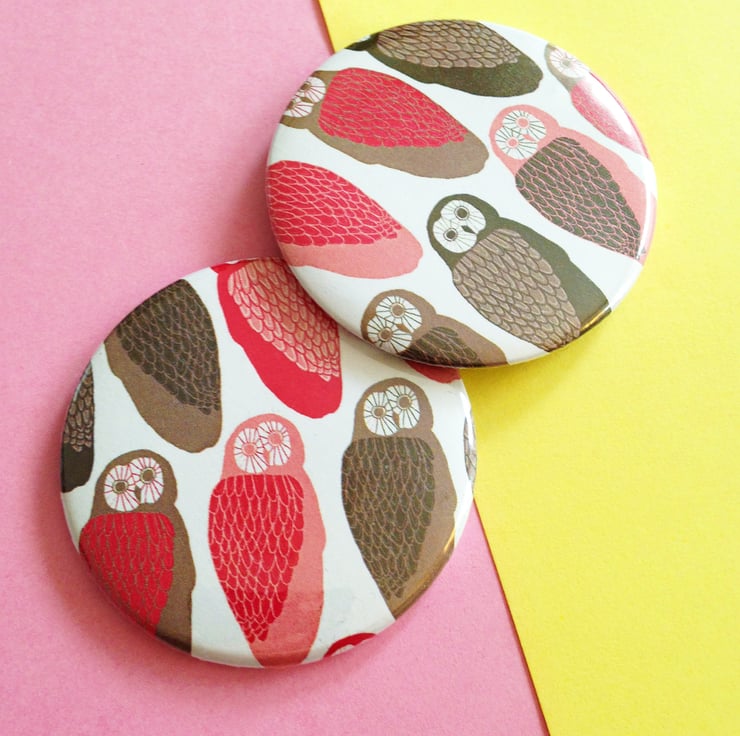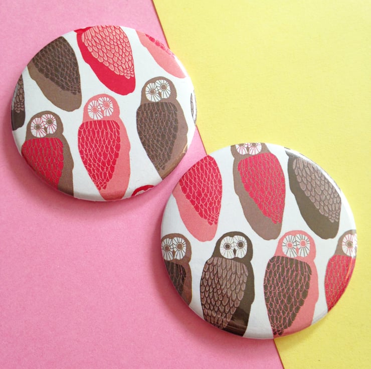A cute mirror with a pattern of pink owls. A great gift for a loved one or as a treat for yourself!