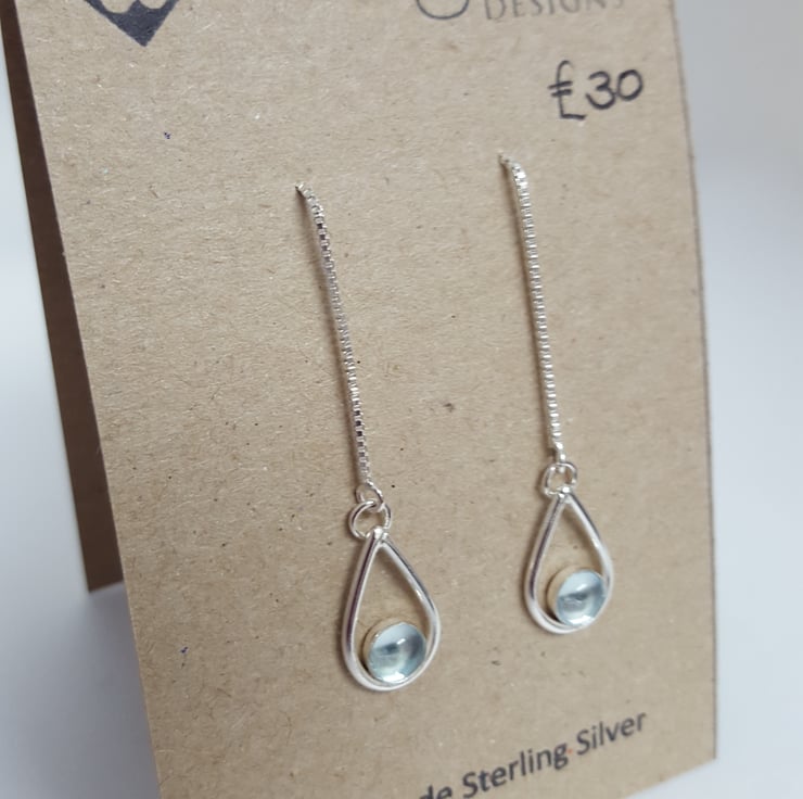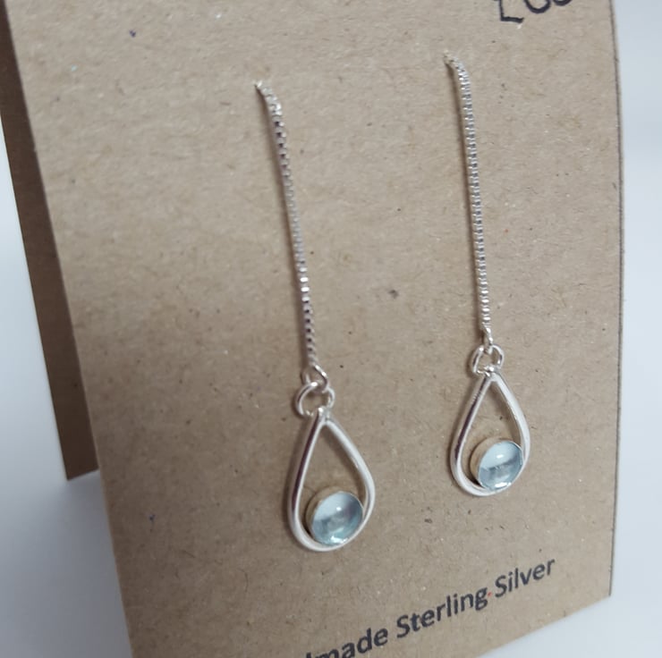 These delicate drop earrings are made from sterling silver and are set with sky blue topaz 5mm stones.