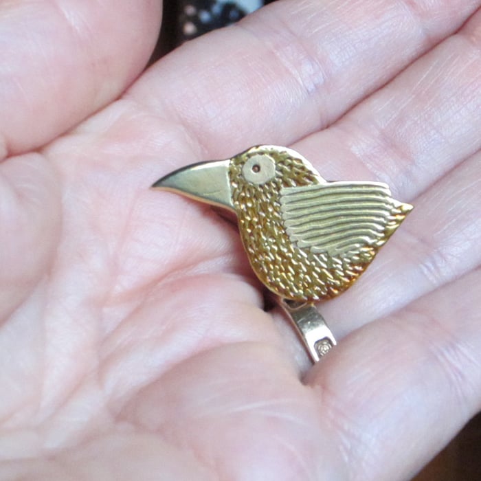 Tiny little bird made from etched brass.I believe bird watchers call these LBJs.