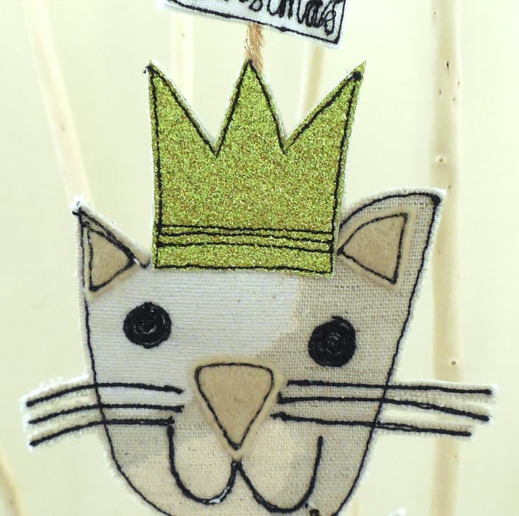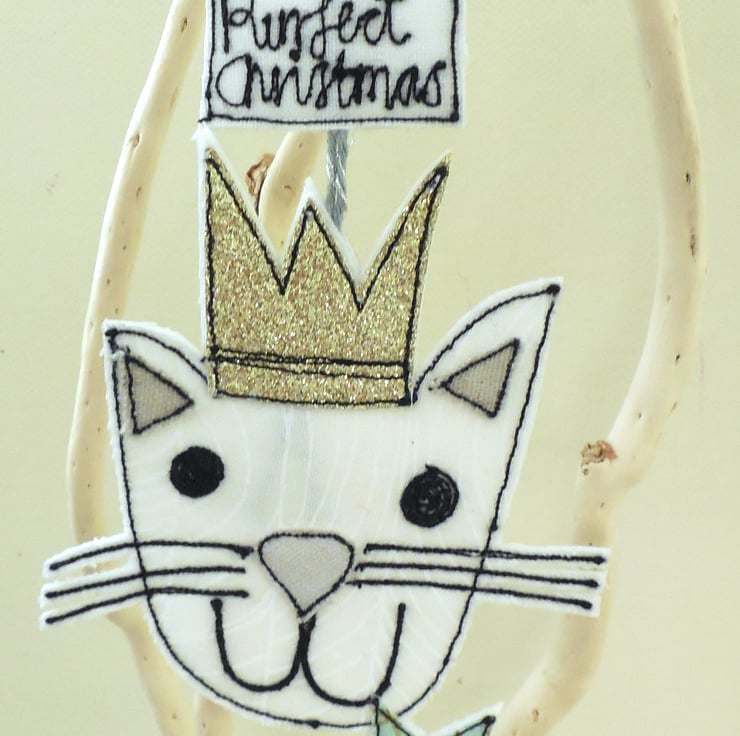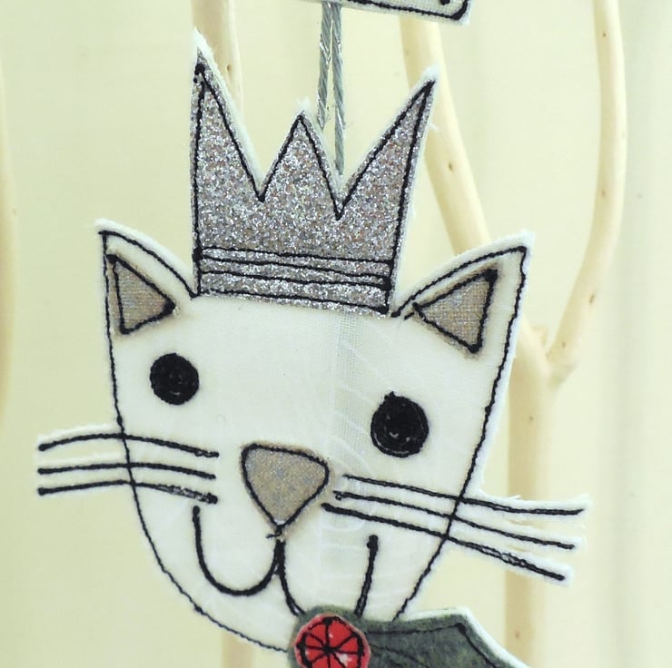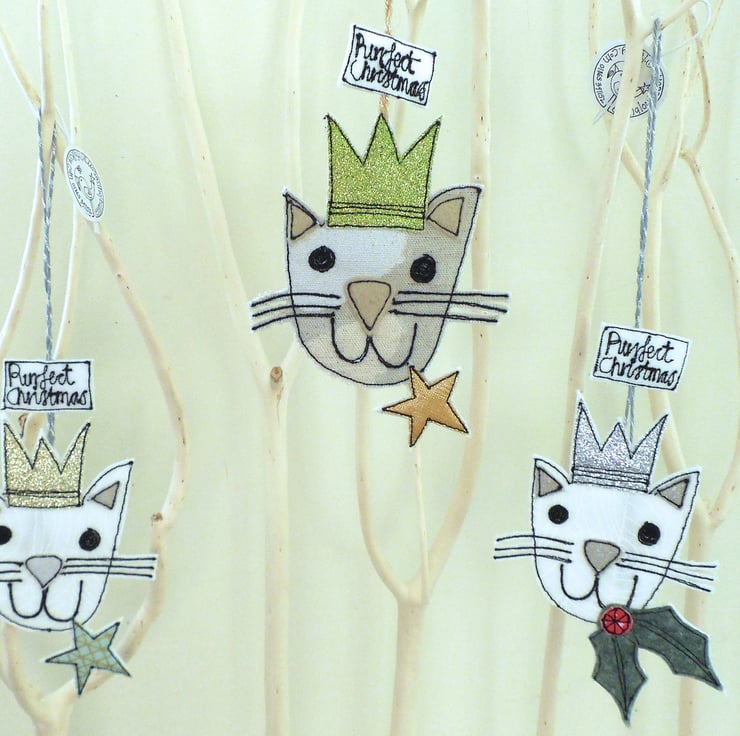 Every cat owner needs a cat decoration for their Christmas tree! This feline wears a glitter crown and holds either holly or a star in its mouth with a label saying ' Purrfect Christmas' to add festive cheer. Measuring approximately 12cm with a fine cord to hang. This listing is for one cat, I listed three for ease.