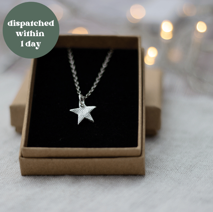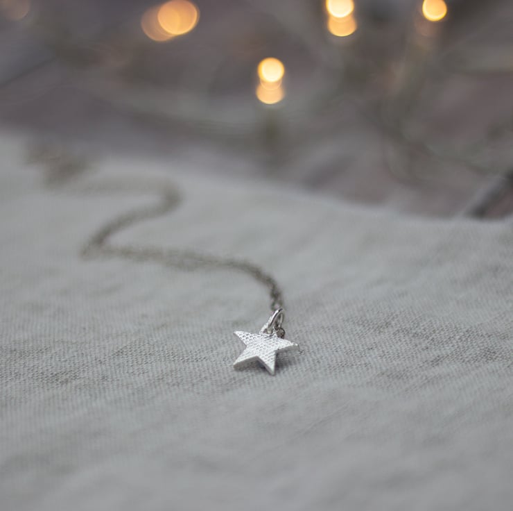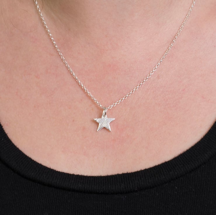 The sparkly star pendant has a subtle honeycomb texture and has been polished to a high shine.