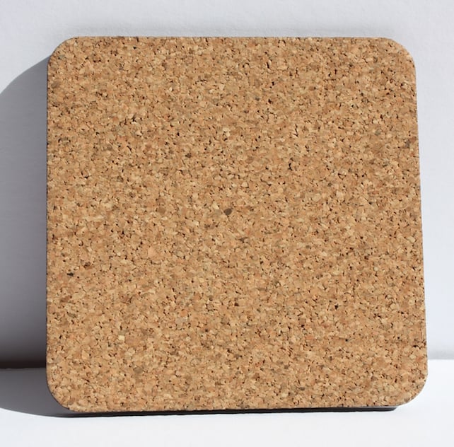 The coasters are heat resistant with a non-slip cork backing and each coaster measures 4"x4"x 1/8". They are supplied in a cellophane packet.