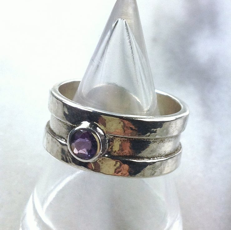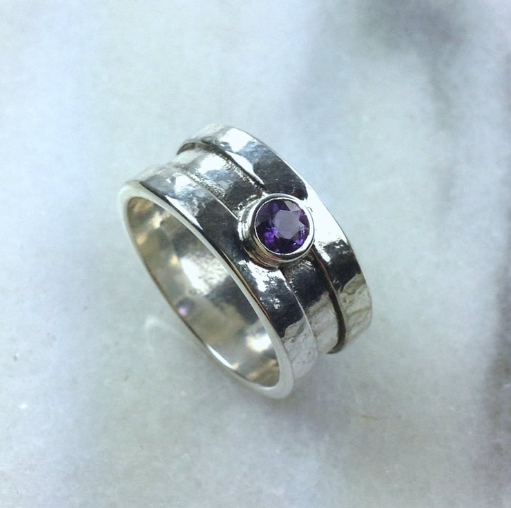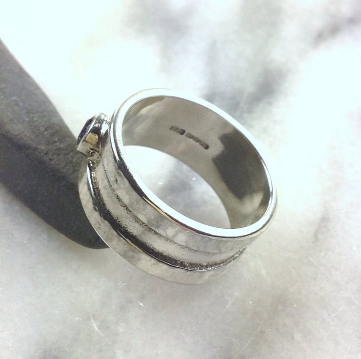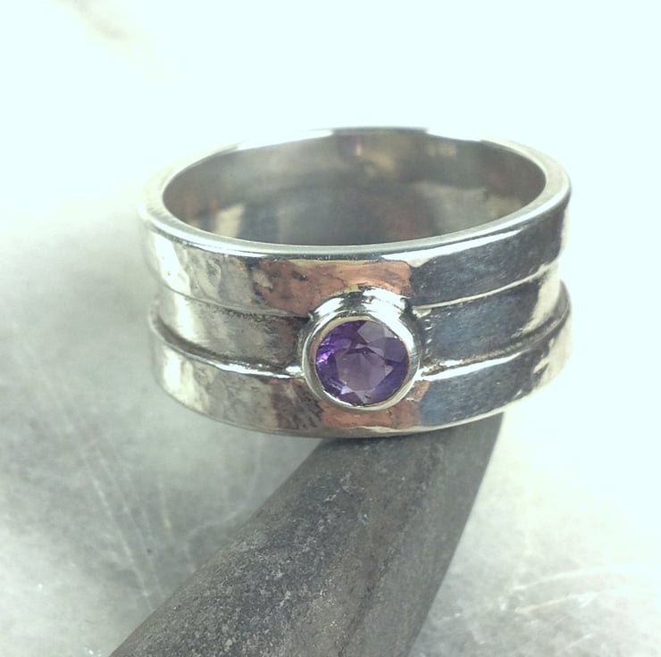 Rill - A beautiful wide sterling silver ring, set with a faceted amethyst .