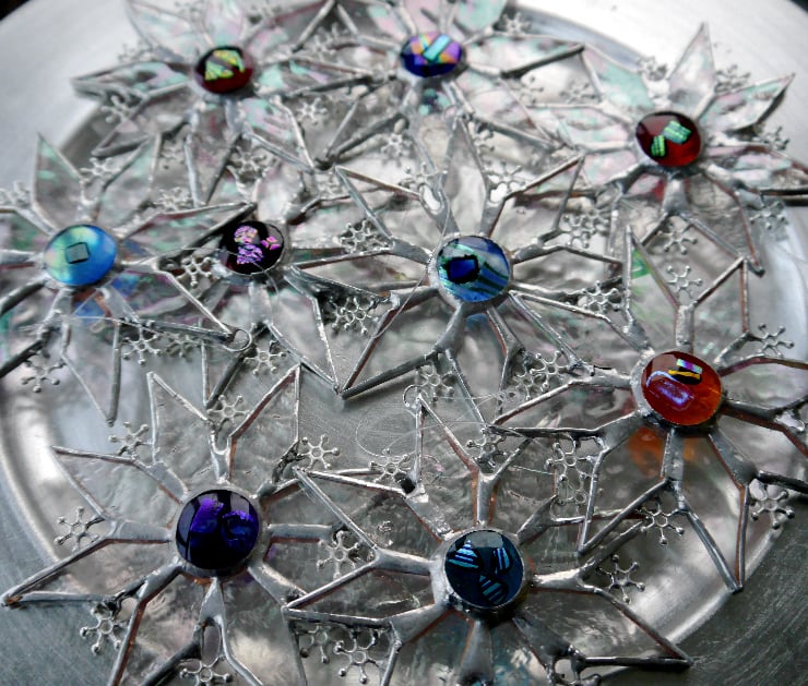For extra sparkle I've soldered 8 little silvery snowflakes between each point.