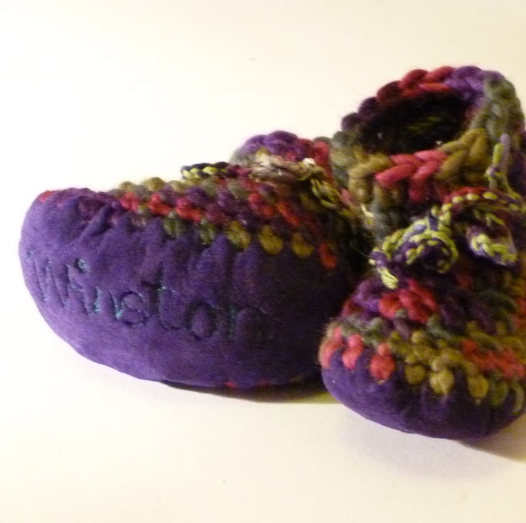 Delighted to have found this lovely soft Norwegian wool and recycled suede in rich jewel colours. Now customizable with name embroidered on sole. These have been bought for both boys and girls,