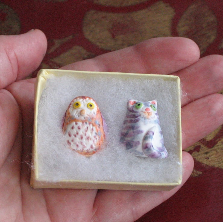 Little models of Edward Lear's romantic duo, made from polymer clay. 2mm high and gift boxed. Number 4 of a series of 6. A sweet little gift for an engagement or wedding anniversary. Can be displayed in a dolls' house or a shelf or carried in the box as a Good Luck charm, totem or love token. Keep these out of reach of small children.