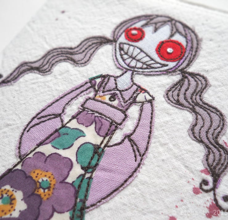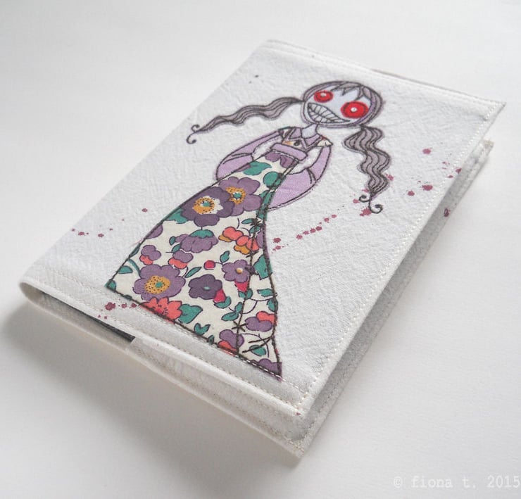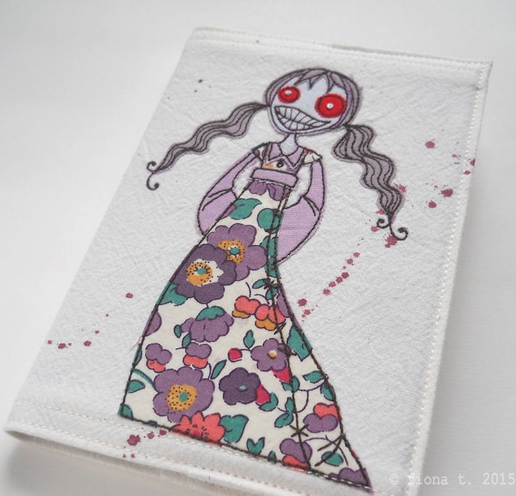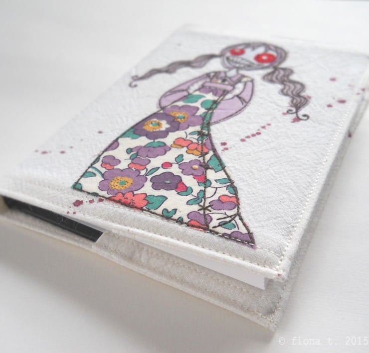 freehand embroidered zombie fabric notebook cover and A6 sketchbook.