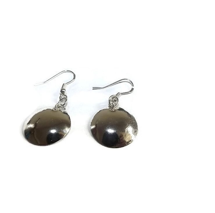 A modern pair of sterling silver earrings featuring two discs cut from 0.7mm thick sheet metal which has first been roller printed with a rolling mill creating a unique abstract pattern then domed.