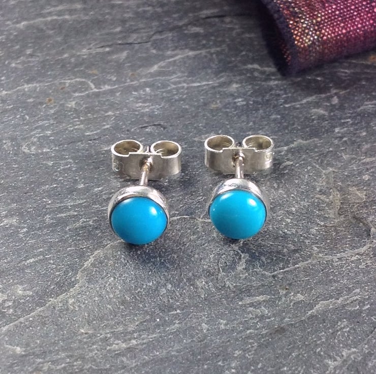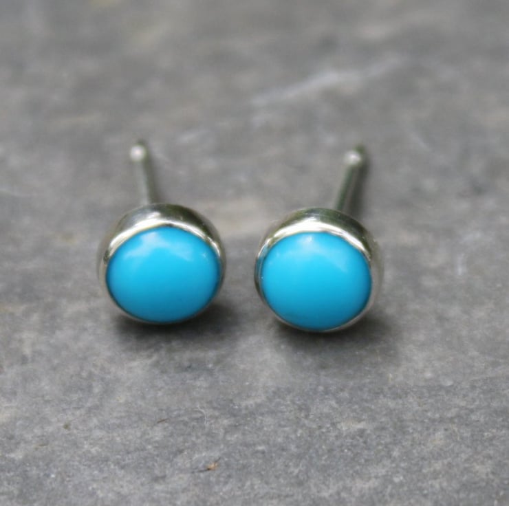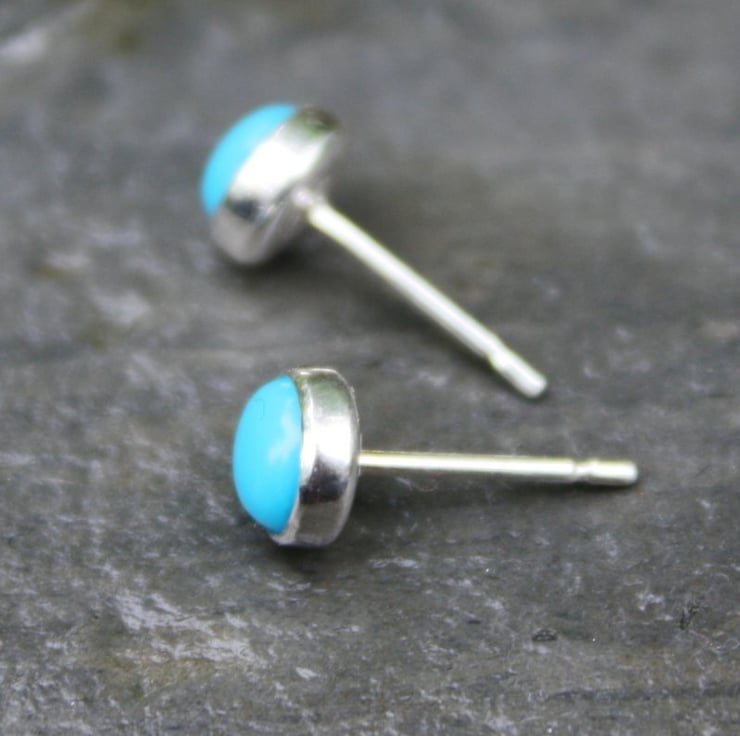 The turquoise cabs measure 5mm diameter. the silver has been polished to a bright finish.