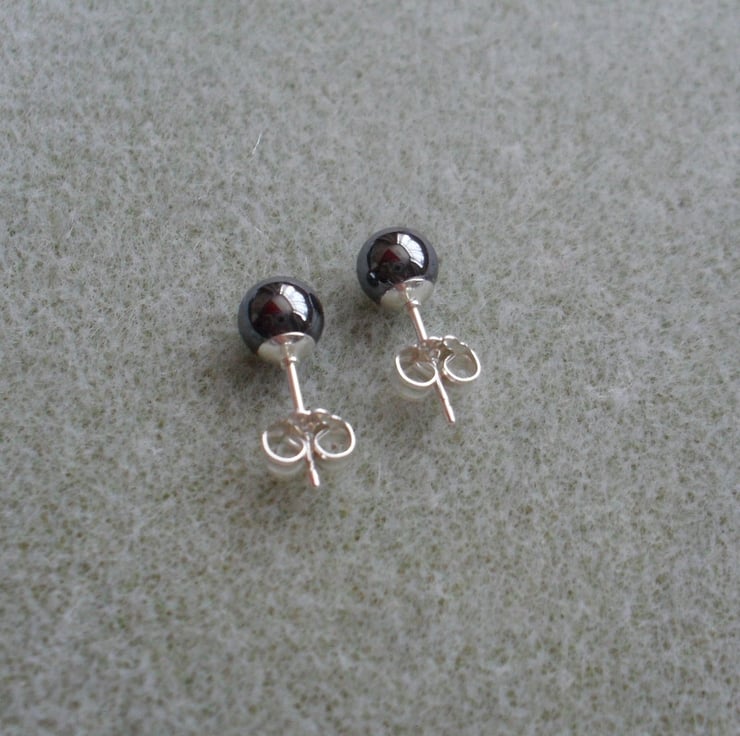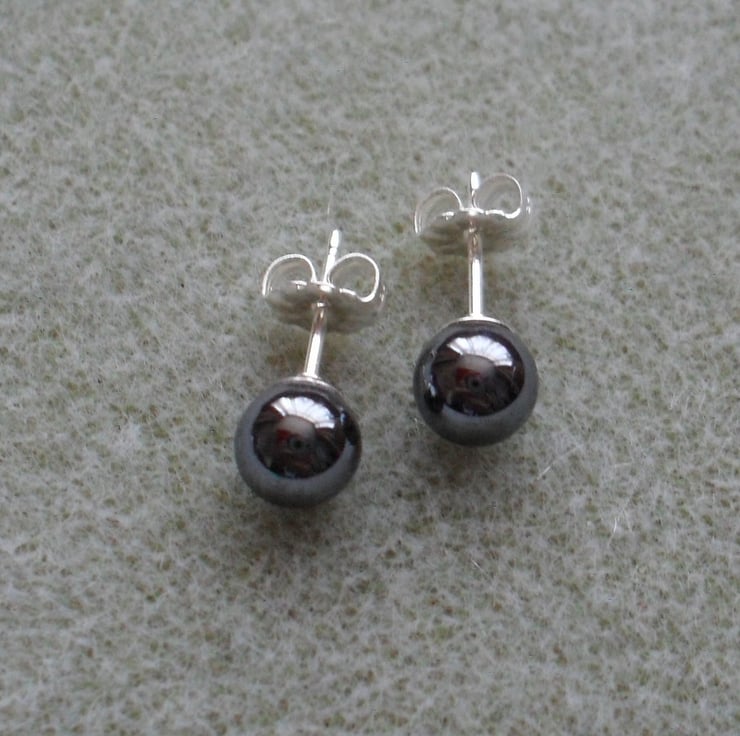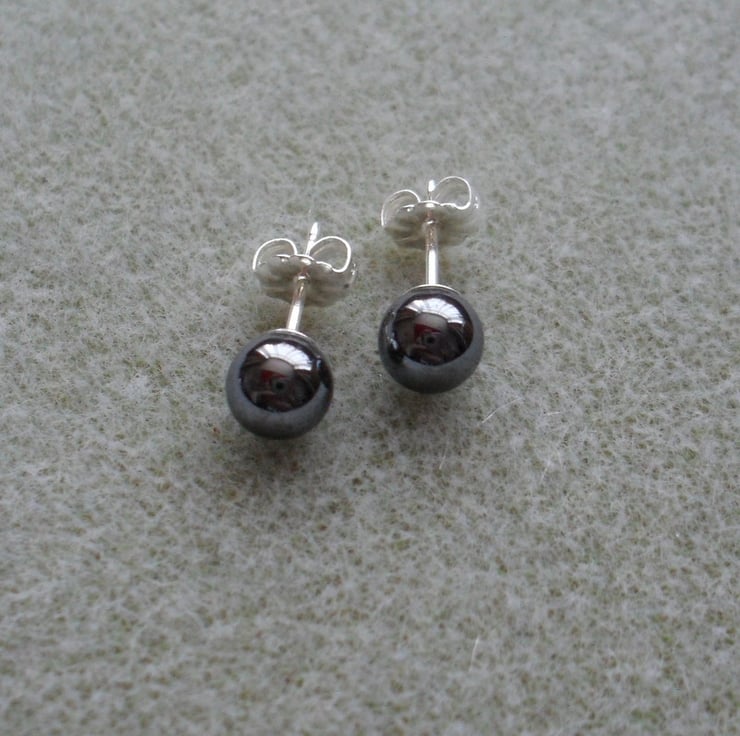 6 mm haematite earrings with sterling silver posts and butterfly backs stones are a lovely gunmetal grey colour