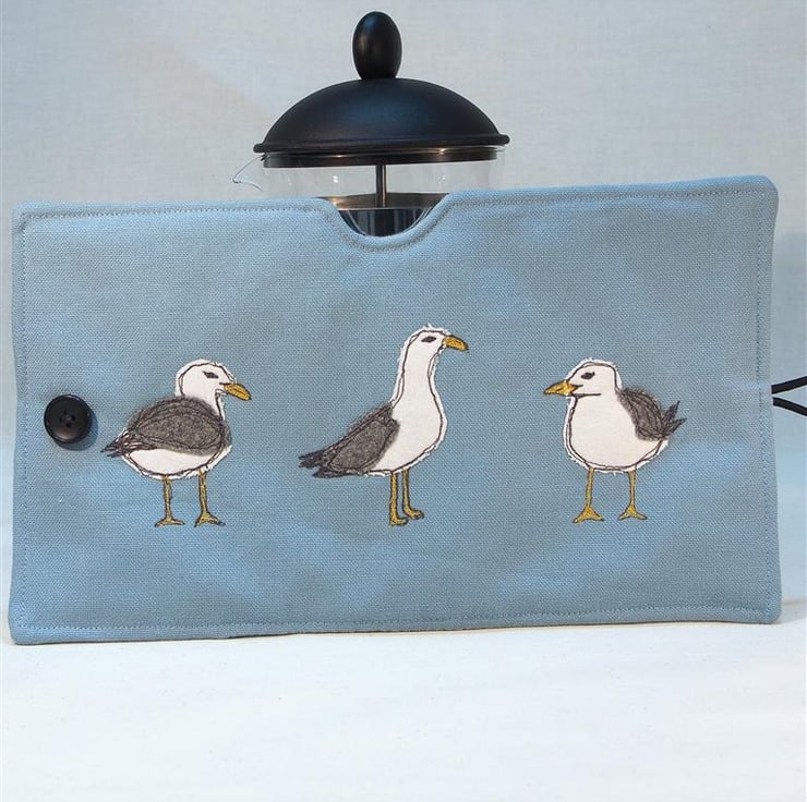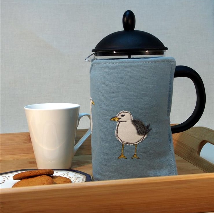 Featuring my own, unique Seagulls design this pretty wrap style Cafetiere Cosy will be a beautiful addition to any kitchen.