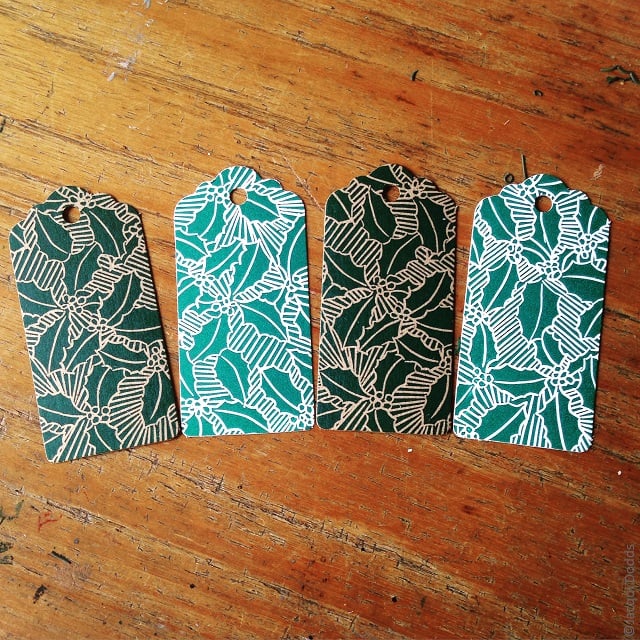 These Christmas gift tags are original lino prints that have been carefully hand carved from my design and printed with a beautiful dark emerald green ink.