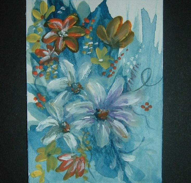 these delicate flowers have been painted using quality materials. This is an aceo which is a miniature painting that measures just 2.5" x 3.5" and is highly collectable.