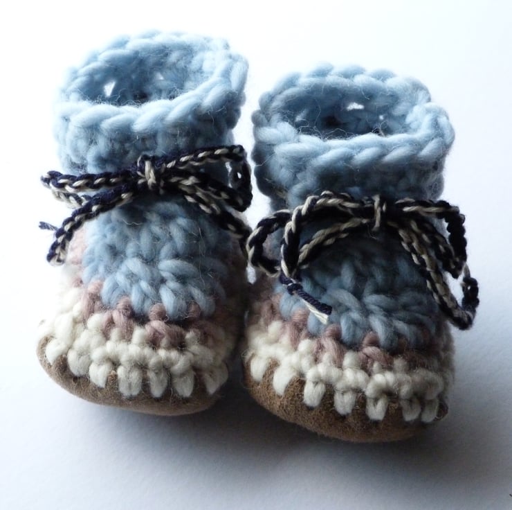 Soft, chunky Norwegian wool hand crafted baby boots.