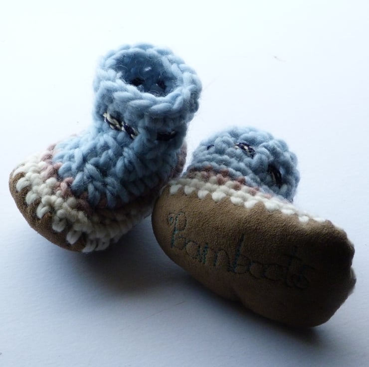 These funky little boots will keep your baby's feet snug and warm, and can be personalised with name embroidered on sole. Warm woollen fabric with stretch for comfort and growing room plus a soft suede non-slip sole. A perfect baby gift for a naming ceremony or birthday.