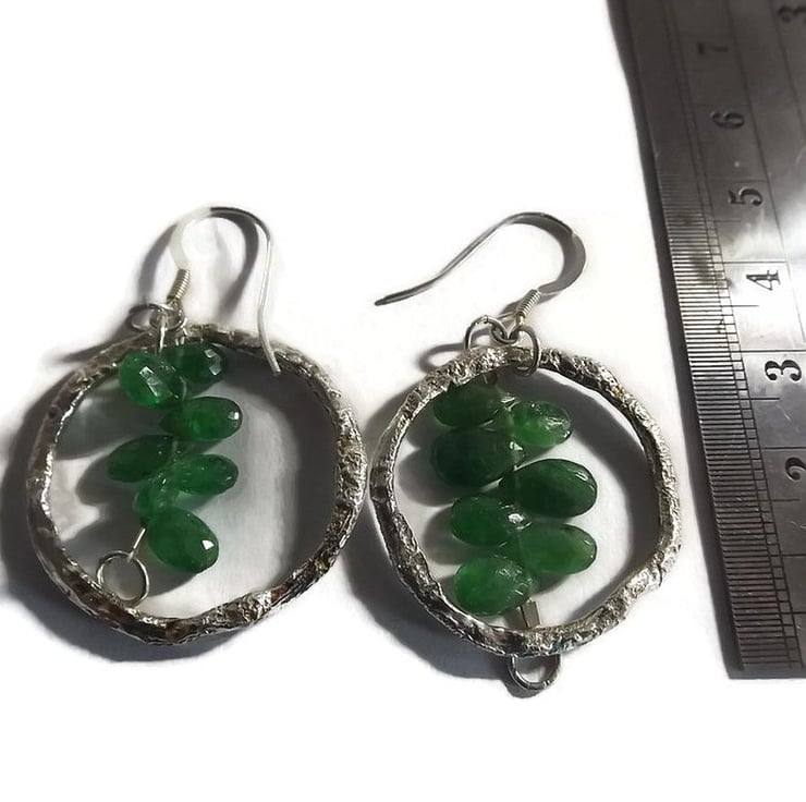 The hoops are made from 2mm thick round sterling silver wire and are 2.9cm in diameter. The tsavorite garnets are a gorgeous,vibrant green colour and measure approximately 6 X 4mm.
