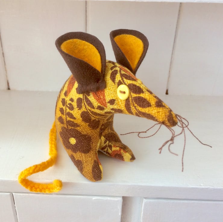 Mouse made from a funky 60s Vintage Fabric of a type usually refered to as 'barkcloth', from WittyDawn.