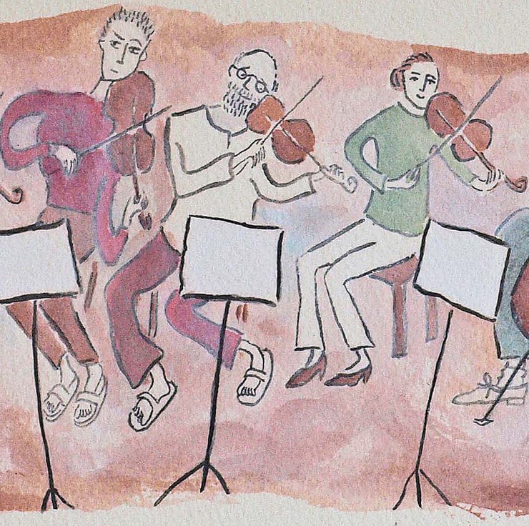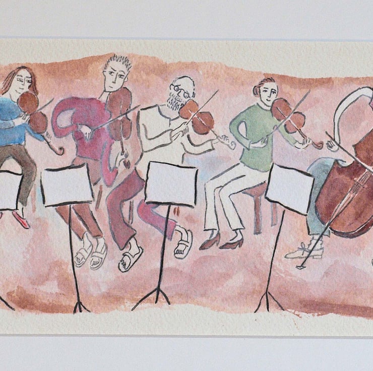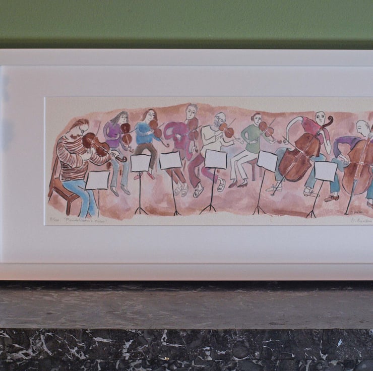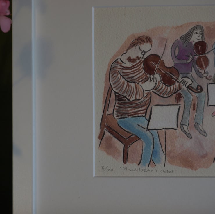 Here is a giclee print (37.5 x 14cm) produced from an original watercolour painting based on an octet I saw rehearsing in my local church hall.