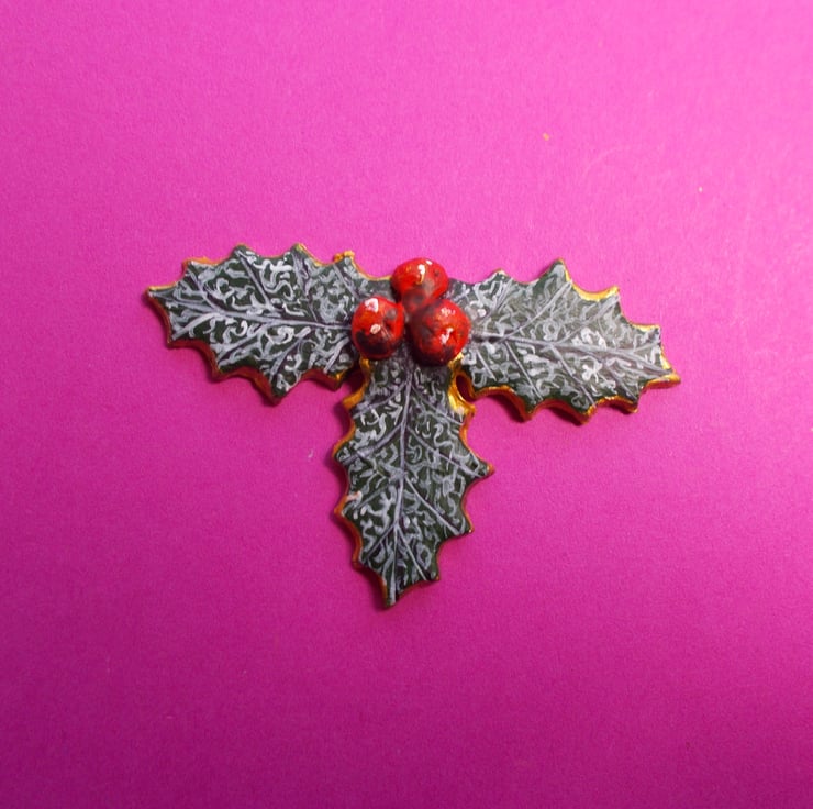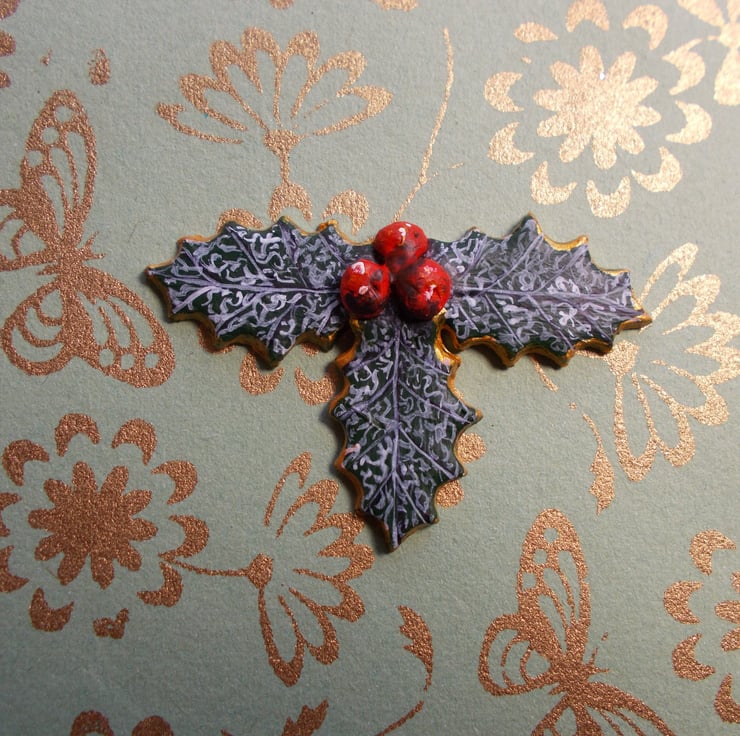 You are looking at a variation of one, of my most popular Festive, Christmas Designs- The HOLLY & BERRIES BROOCH, Lapel Pin