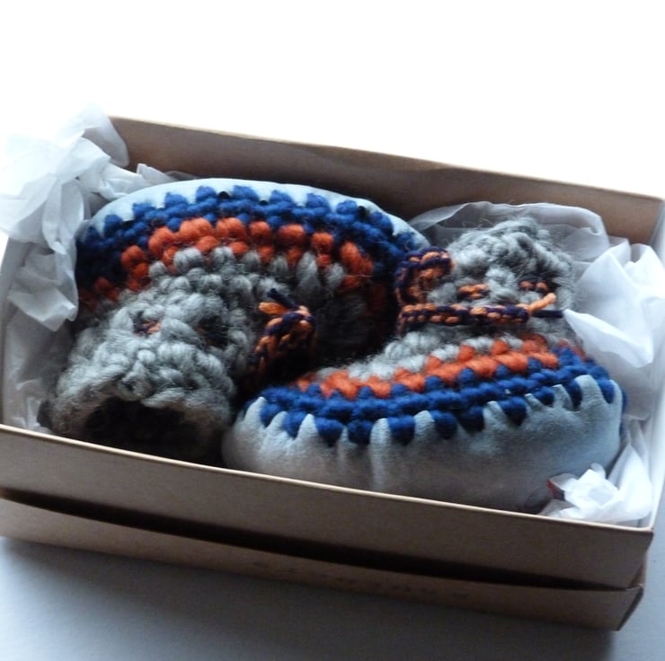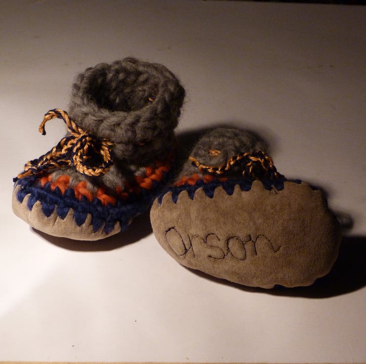 These funky little boots will keep your baby's feet snug and warm, and can be personalised with name embroidered on sole. Warm woollen fabric with stretch for comfort and growing room plus a soft suede non-slip sole. A perfect baby gift for a naming ceremony or birthday.