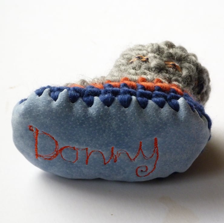 Delighted to have found this lovely soft Norwegian wool and recycled suede in so many lovely colours. Now customizable with name embroidered on sole.