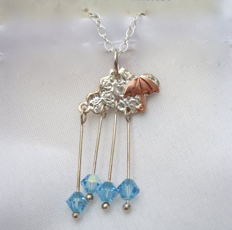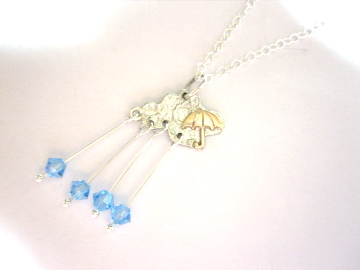 Made from Sterling silver, with a warm brass brolly (Yorkshire for Umbrella) and genuine Swarovski® raindrops - falling from the cloud this is a quality piece. The necklace is also sterling silver - gentle for sensitive skin.