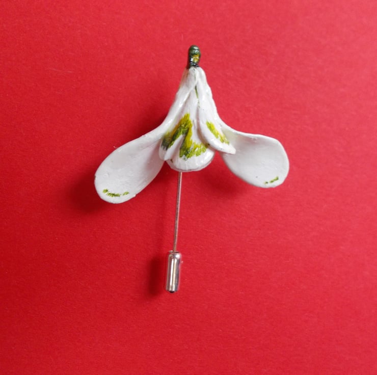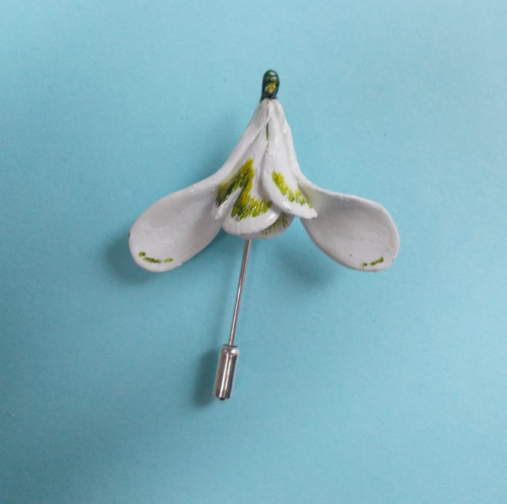 Welcome Spring WHITE SNOWDROP PIN Brooch Lapel Flower Pin HANDMADE HAND PAINTED