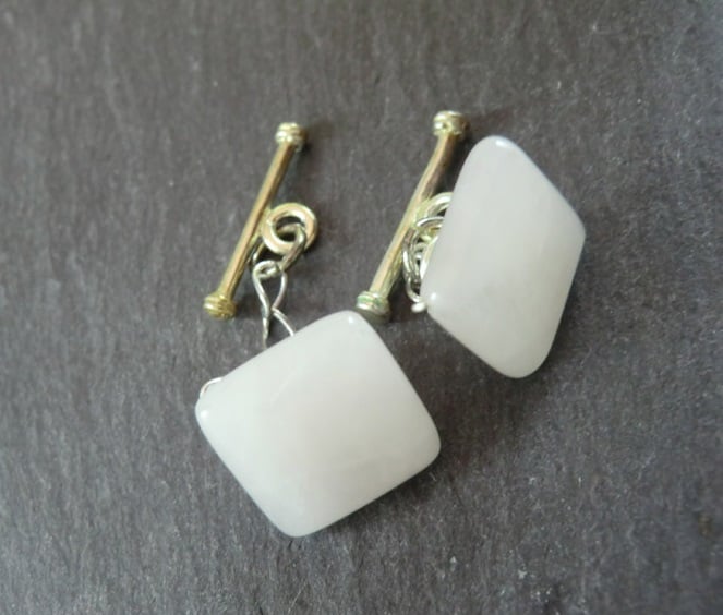 This is a stunning pair of rose quartz pink cufflinks. They are created using real rose quartz gemstones, and silver plated e-coated copper. The perfect accessory for everyday use or for that special event.